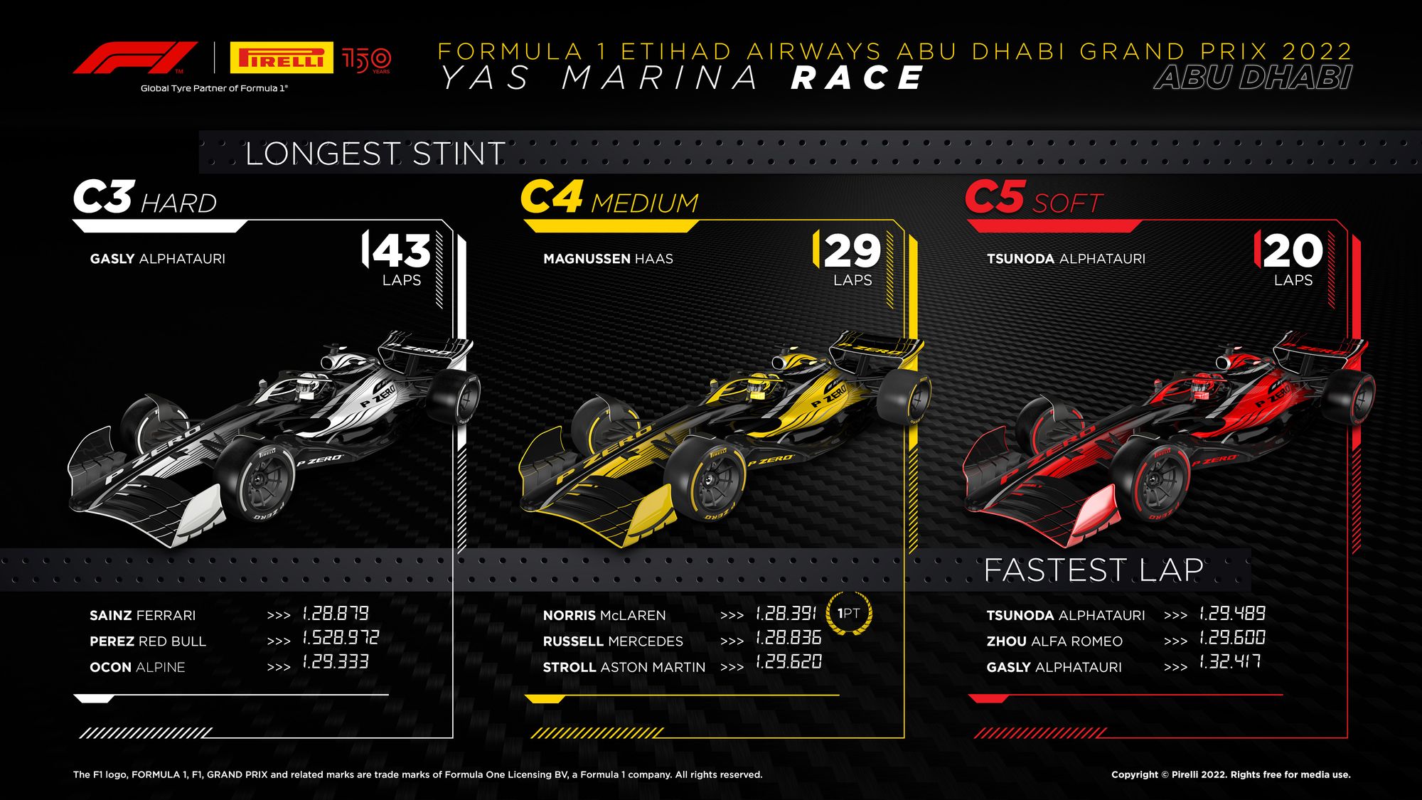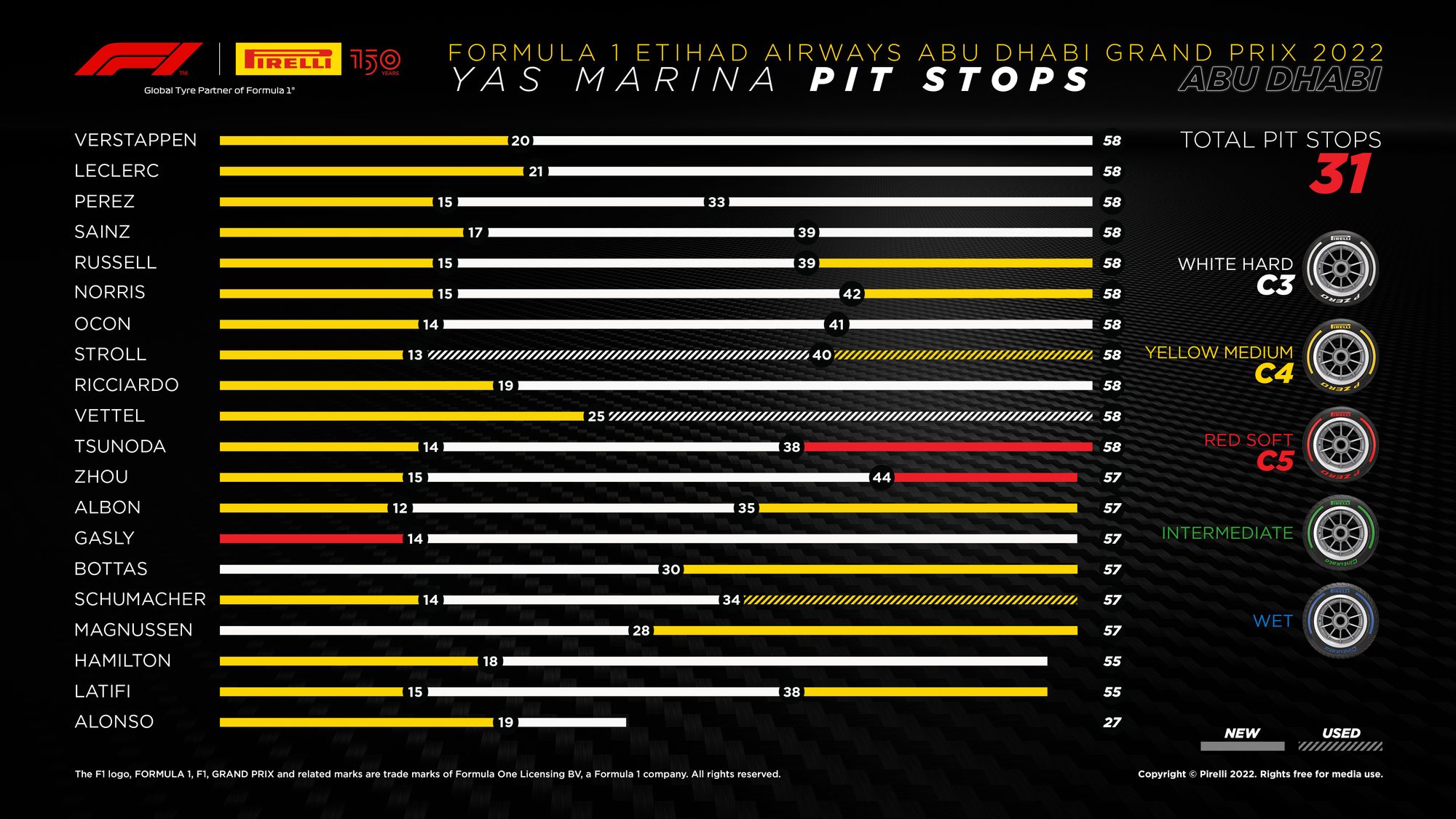As the lights went out for the final time this year, Verstappen remained in complete control, starting as pole sitter and maintaining his advantage throughout the duration of the race. He relinquished his position only briefly while he pitted to swap from mediums to hards, but the two-time world champion quickly regained P1, crossing the checkered flag with an 8-second lead and his 15th victory of the year.