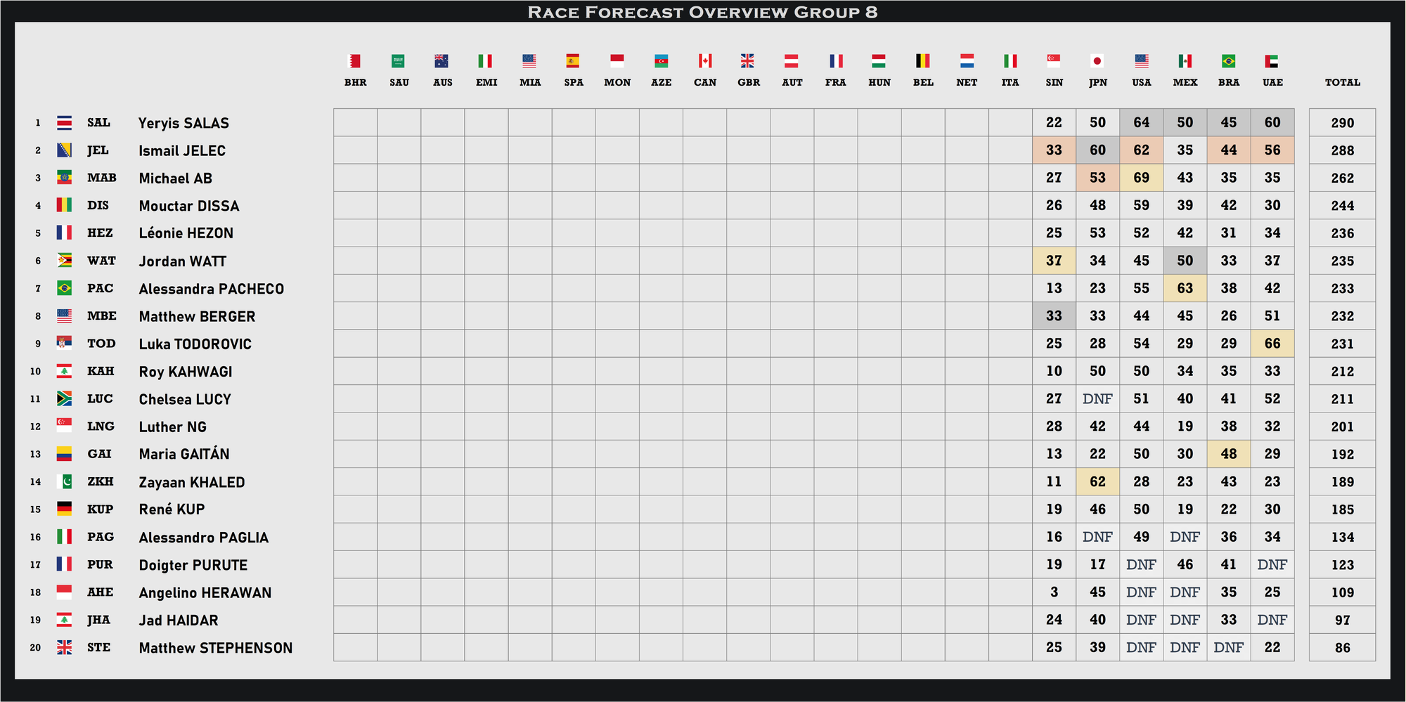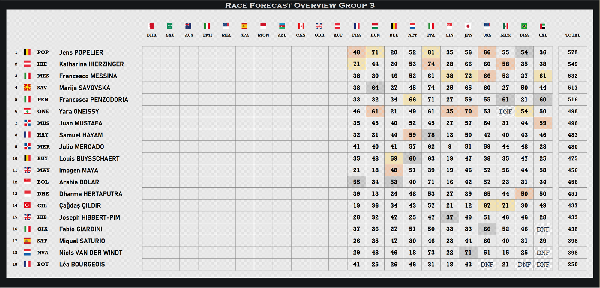 After expressing his concern over the team radio of a loss of power, Hamilton was forced to retire with three laps remaining due to a hydraulic issue. Taking 6th in the driver’s standings for the season.