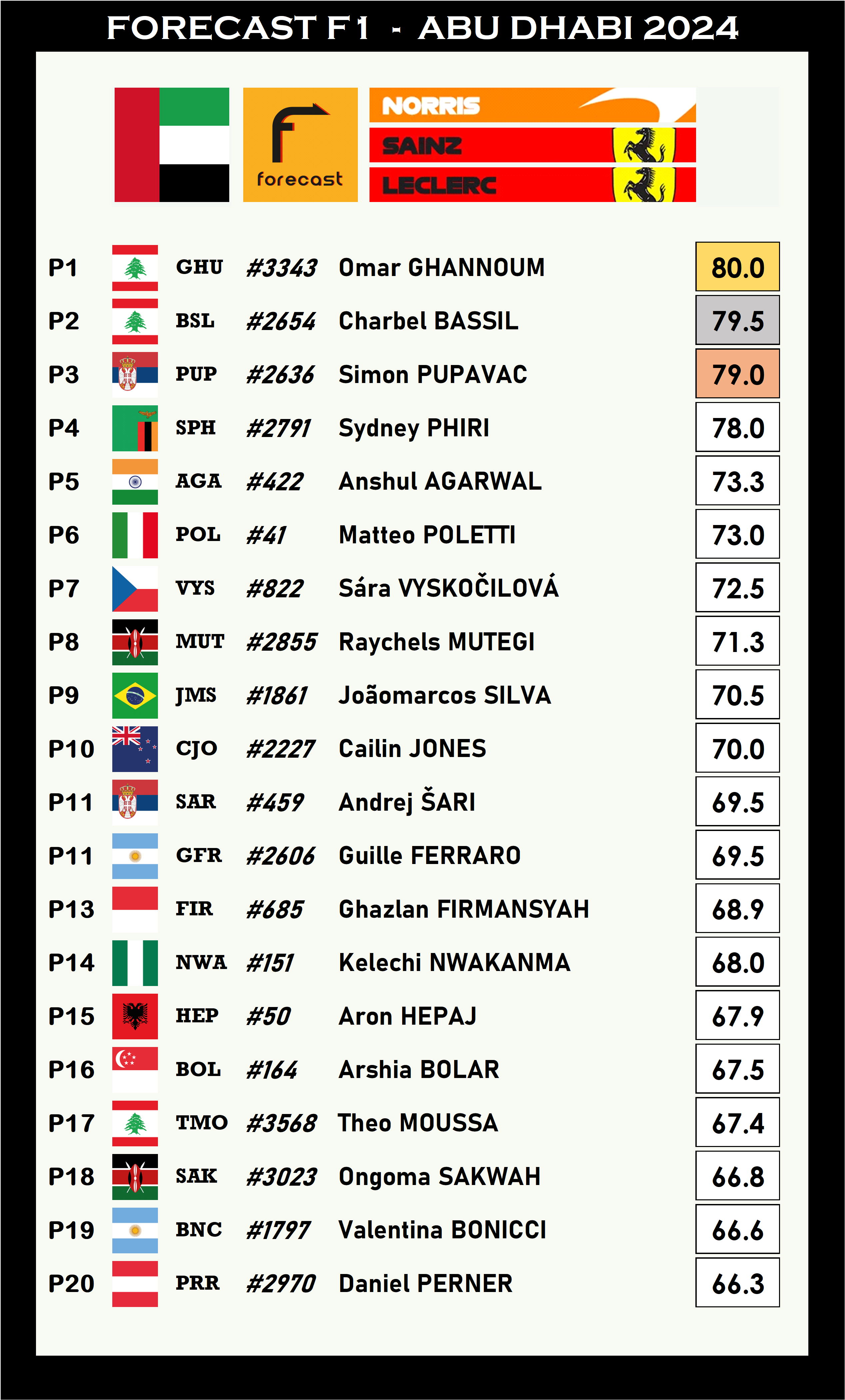 However, this should from now on be done on the Forecast F1 App!