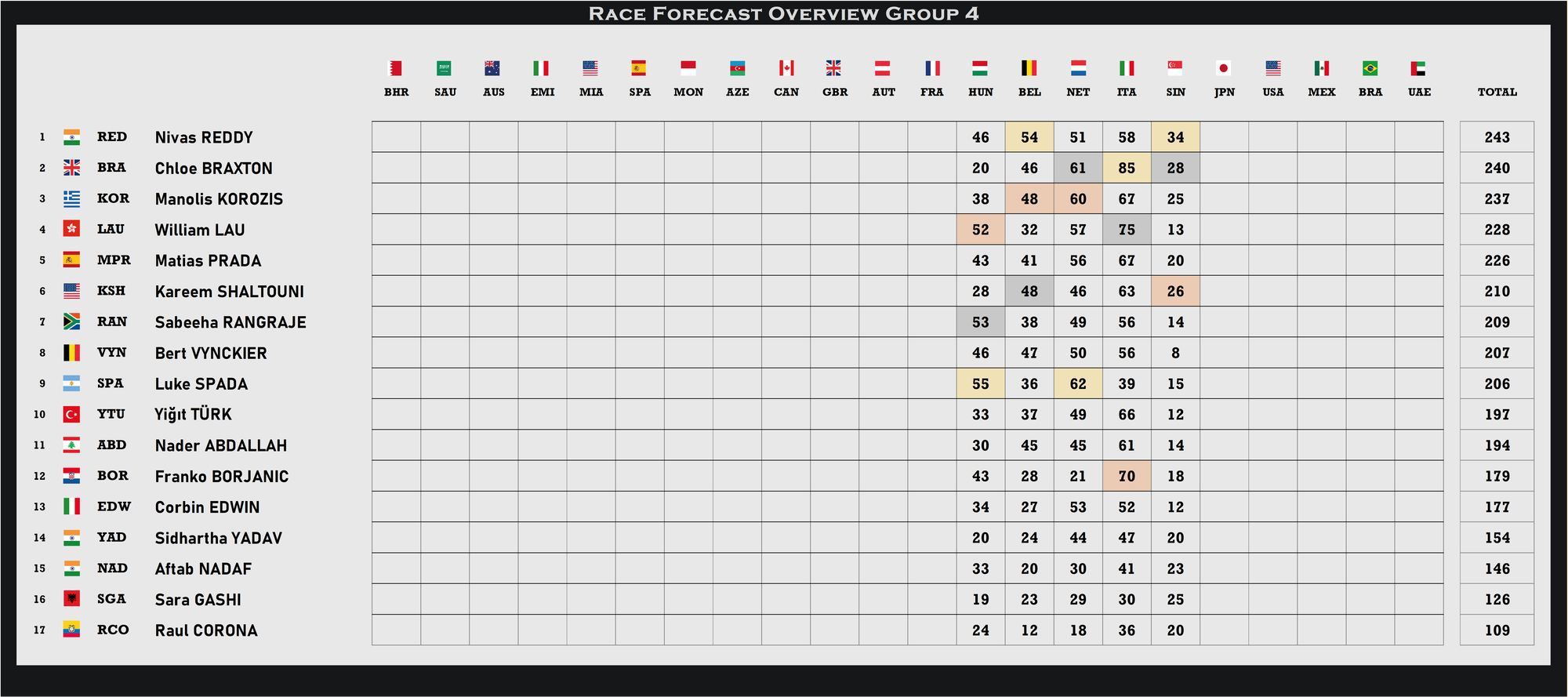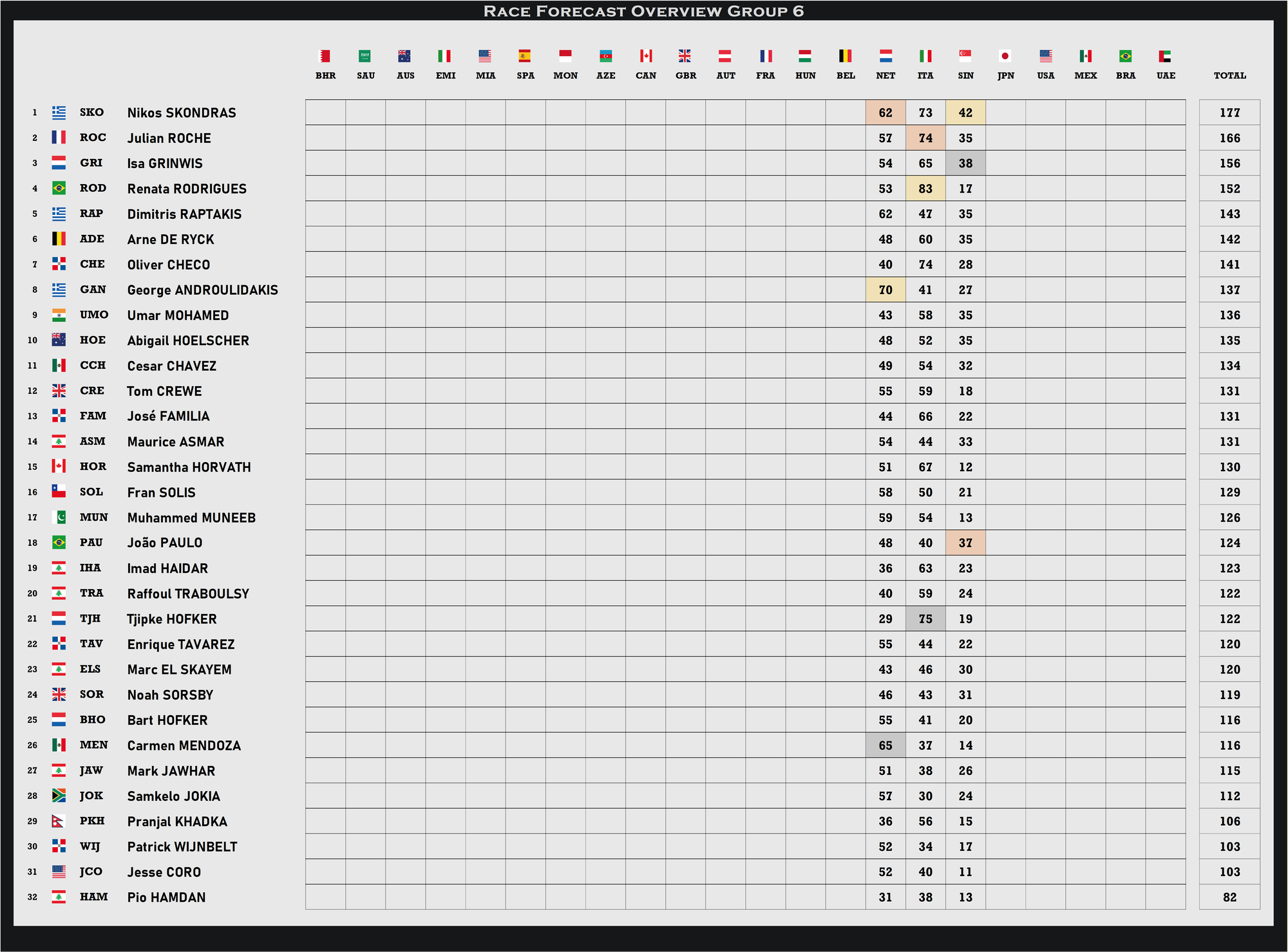 There were six drivers who were forced to retire.