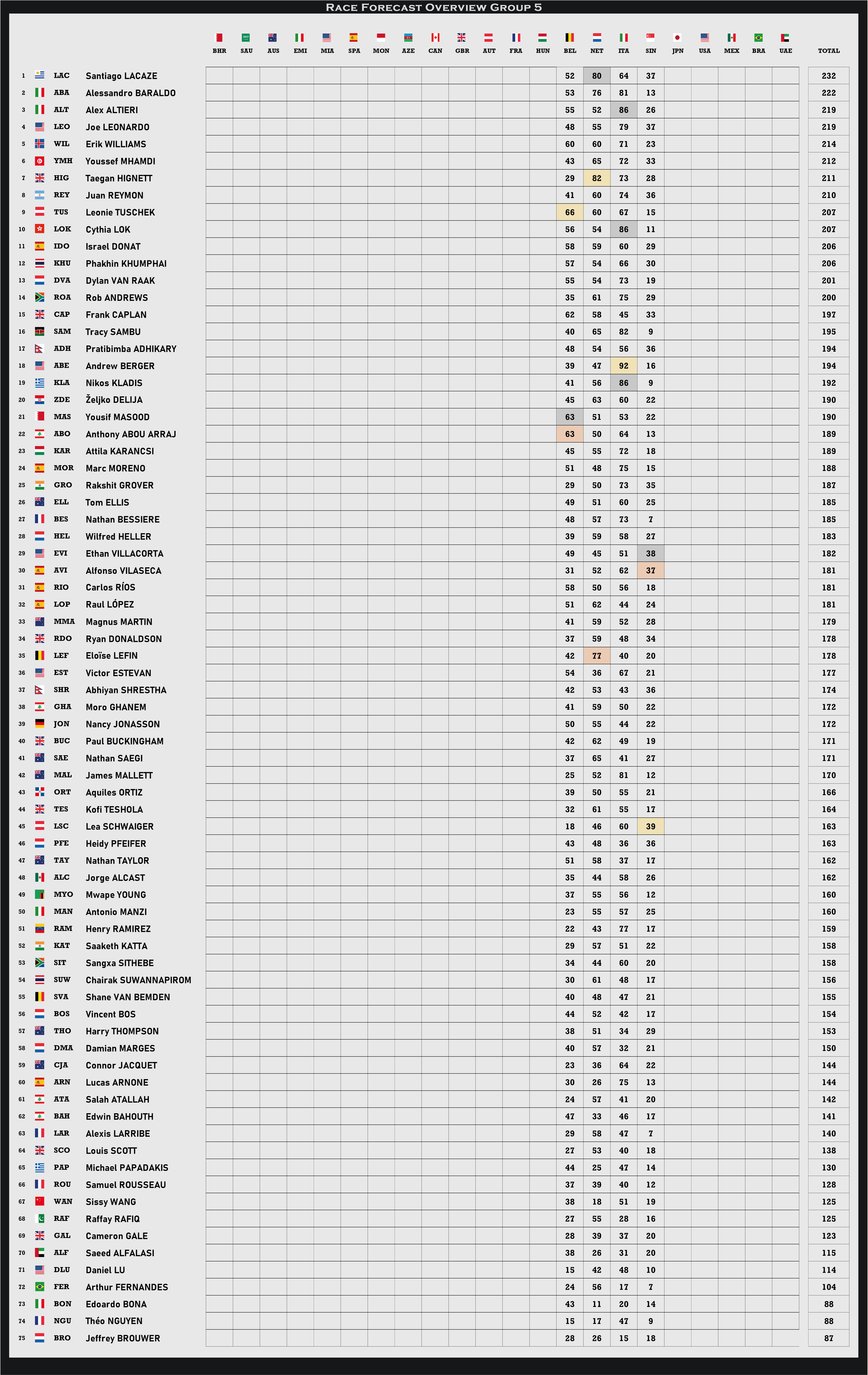 RACE SUMMARY
